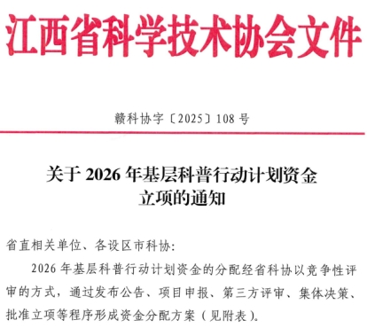 江中新闻网讯(通讯员 张雷 潘玲玲)近日,江西省科学技术协会下发立项通知,我校申报的“江西中医药文化实践基地”入选2026年度江西省全国科普教育基地支持和培育项目。该项目全省高校仅5家入选,也是我校获批的首个省级全国科普教育基地支持和培育平台,标志着我校在科学普及与科技创新融合发展领域取得重大突破。