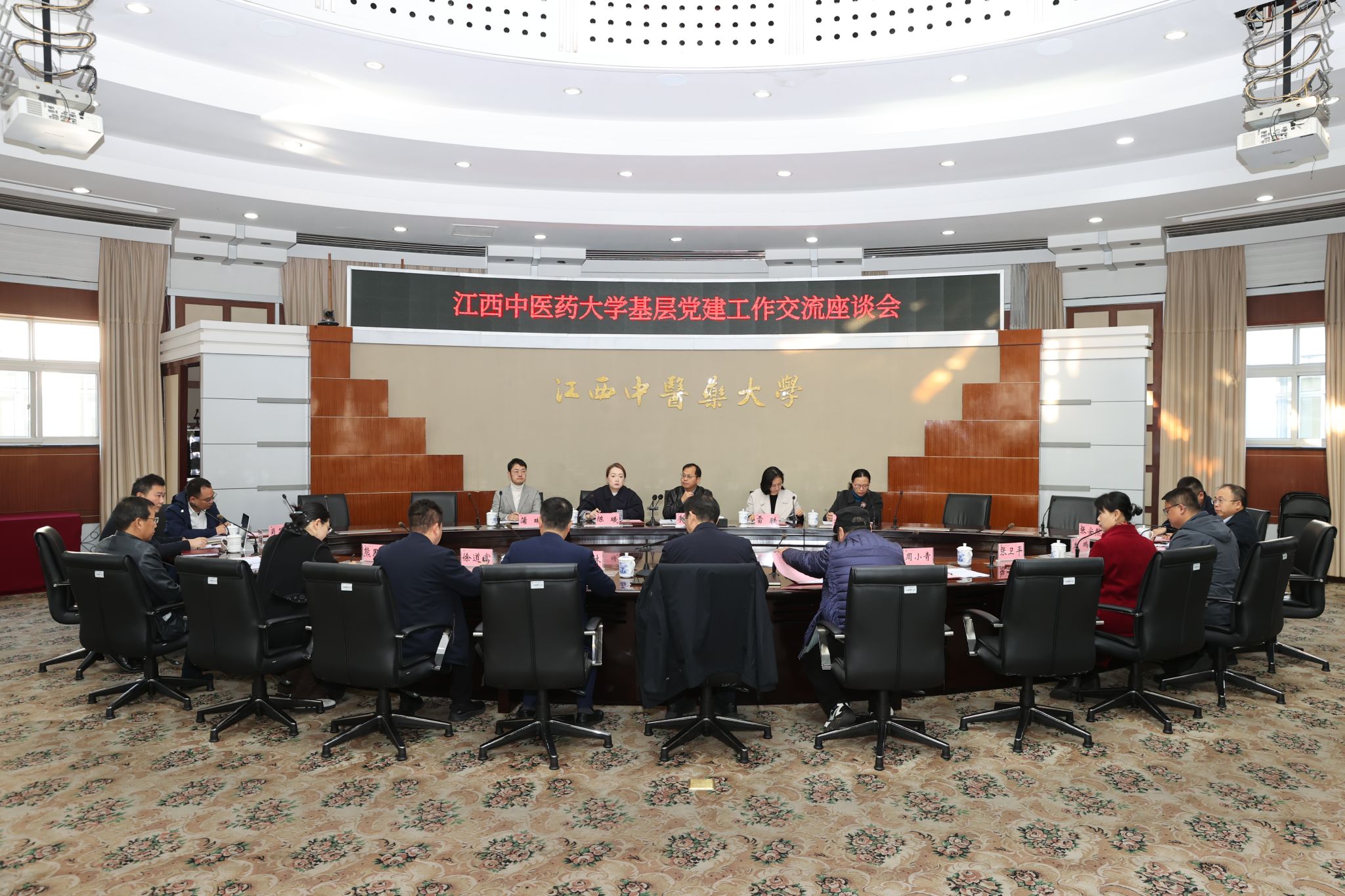 江中新闻网讯(通讯员 严军) 11月21日,学校召开基层党建工作交流座谈会,来自华中科技大学、浙江中医药大学、广州中医药大学、江西财经大学、南昌航空大学等获批全国党建工作标杆院系的高校专家出席会议。学校党委副书记章德林,党委委员聂国林、薛铁瑛、徐道富、周小青,以及党委相关部门、药学院等部门负责同志参加会议。
